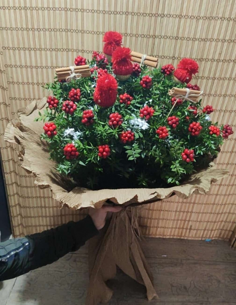 KOKİNA BUKETİ Tasarım 'da kullanılan çiçek ve aksesuarlar stok durumuna göre farklılık gösterilebilir.